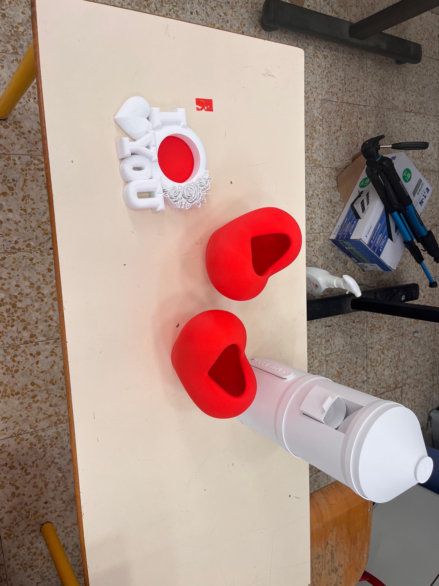 Premières impressions d’objets plus complexes grâce à l’imprimante 3D de l’école.